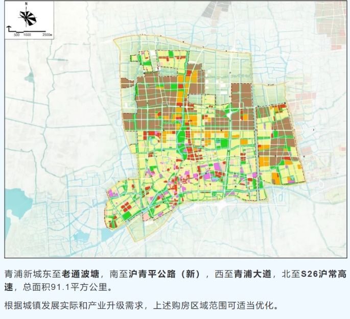 购房区域范围为青浦新城东至老通波塘,南至沪青平公路(新),西至青浦大道,北至S26沪常高速,总面积91.1平方公里。